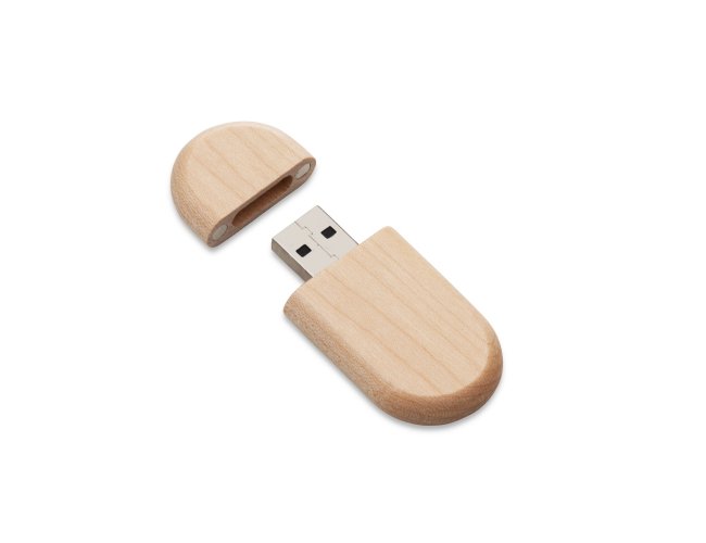 Pen drive de bambu 4gb com formato oval, tampa imantada.