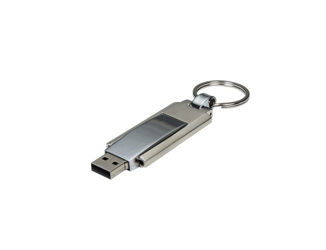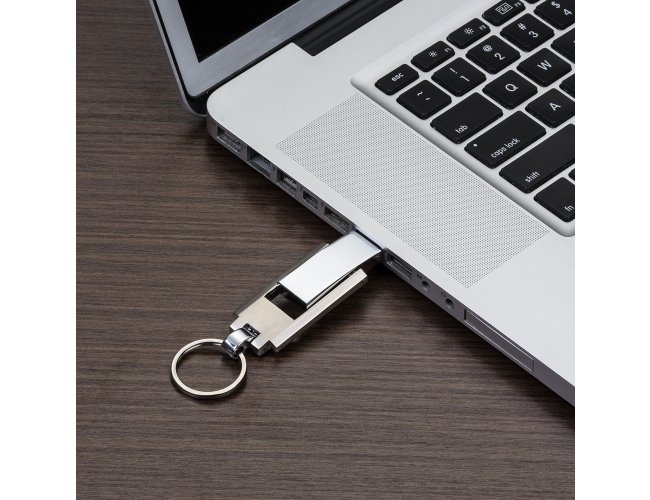 Pen drive 4GB grande de metal com chaveiro. Suporte fosco e compartimento do pen drive brilhante, basta puxá-lo e girá-lo para utilização.