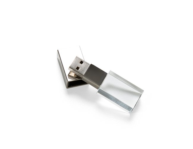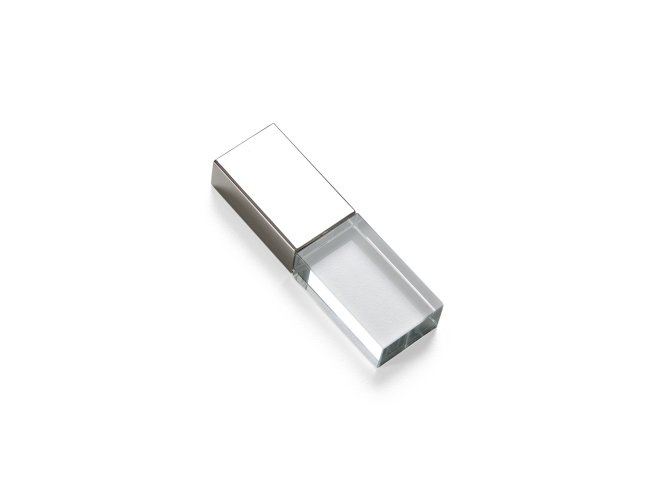 Pen drive 4GB de vidro com tampa plástica prata espelhada Personalizado com a sua logomarca.