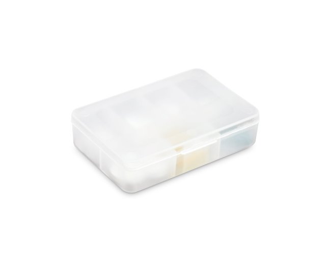 Porta comprimidos com tampa e 7 divisórias, ideal para separar pelos dias da semana. Food grade. 85 x 55 x 20 mm