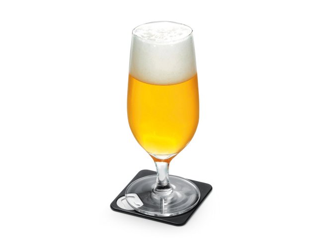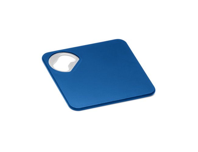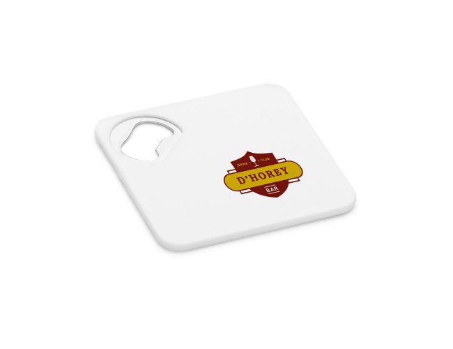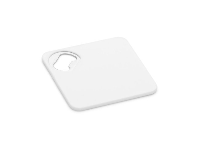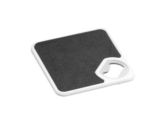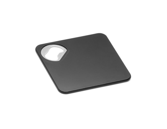 Porta copos em ABS com abridor de garrafas e esponja antiderrapante na base. 82 x 82 x 4 mm