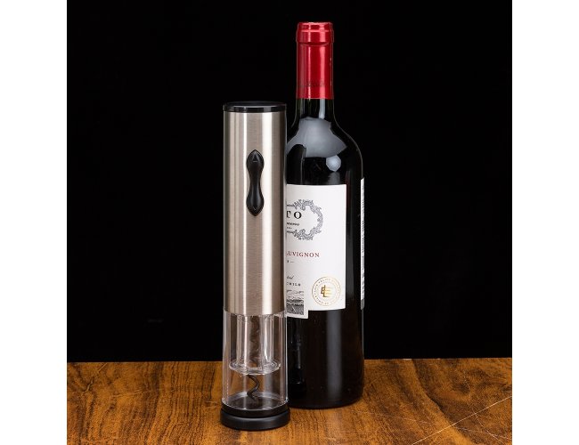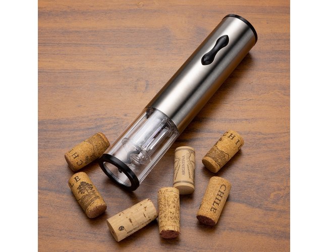 Saca rolhas elétrico com cortador de lacre, contém compartimento com tampa rosqueável para inclusão de 4 pilhas AA (não acompanha).