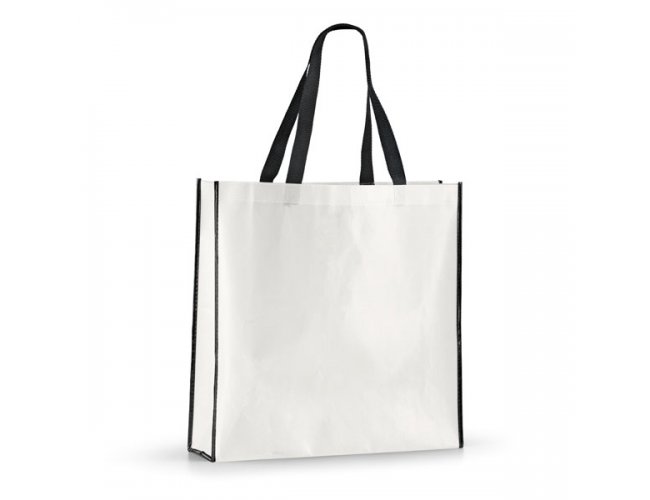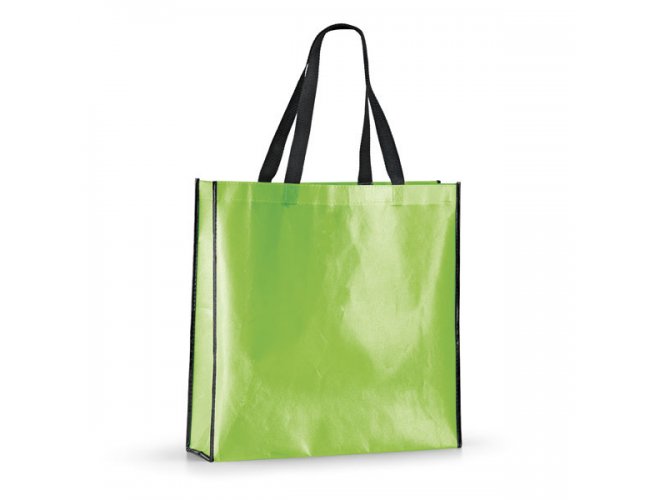 Sacola 52856 Personalizada com a sua logomarca. Non-woven laminado: 120 g/m². Laminação brilhante. Alças em webbing de 60 cm.