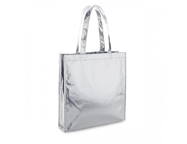 Sacola em non-woven laminado (90 g/m²) com alças de 50 cm e com laminação brilhante. 340 x 350 x 80 mm