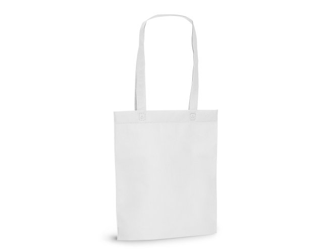 Sacola. Non-woven: 80 g/m². Termo-selado. Alças de 55 cm. 270 x 350 mm