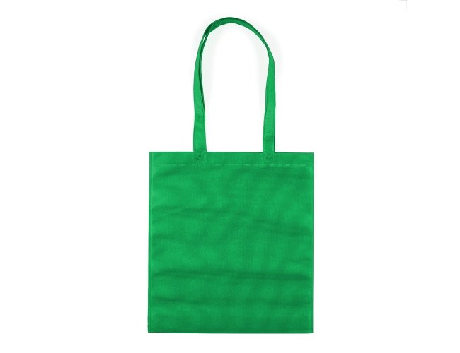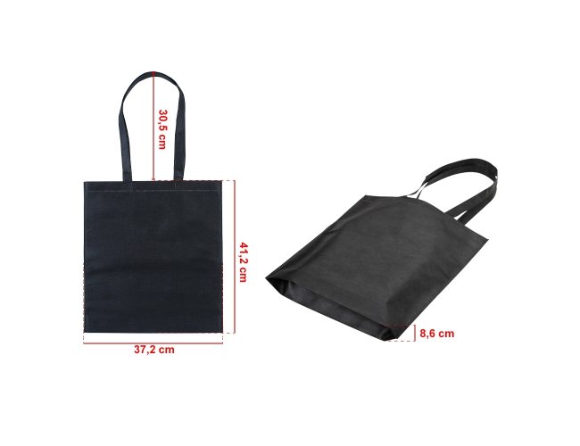 Sacola colorida com alça em material TNT, possui símbolo ecológico/reciclável na costura da alça. Personalizada com a sua logomarca. Tamanho total aproximado (CxD): 41,2 cm x 37,2 cm – Alça 30,5 cm. Peso aproximado (g): 34