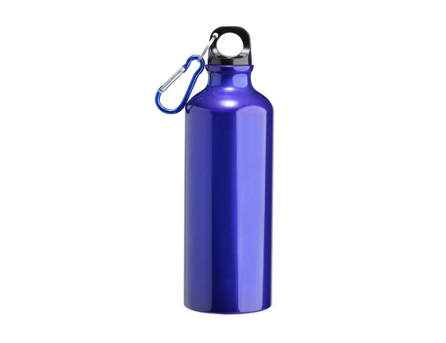 Squeeze 500ml de alumínio com pintura metalizada, tampa rosqueável e acompanha um segundo bico com mosquetão (não é térmico).