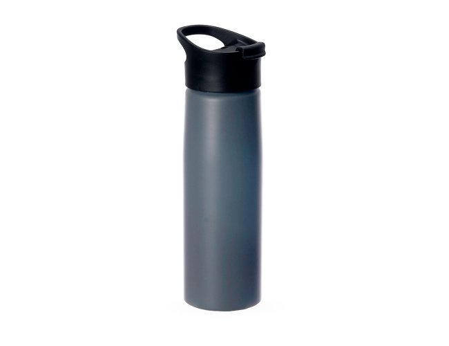 Squeeze alumínio de 750ml com pintura fosca. Squeeze com tampa plástica rosqueável, alça e tampa protetora para o bocal.