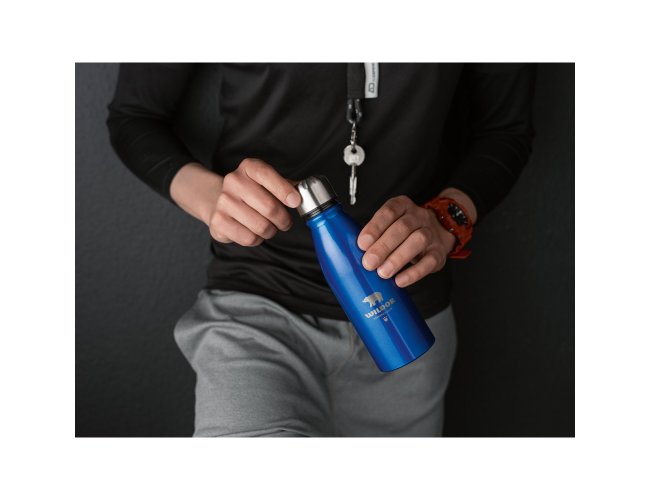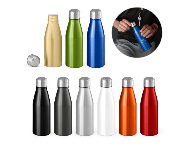 Squeeze em alumínio com tampa em aço inox e capacidade até 500 ml. Food grade.