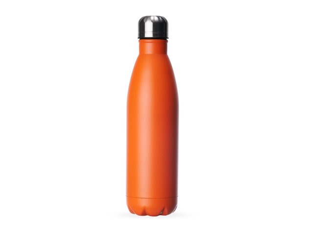 Garrafa 750ml em inox com tampa rosqueável e pintura fosca cítrica.