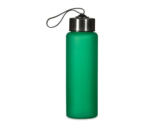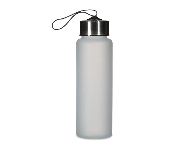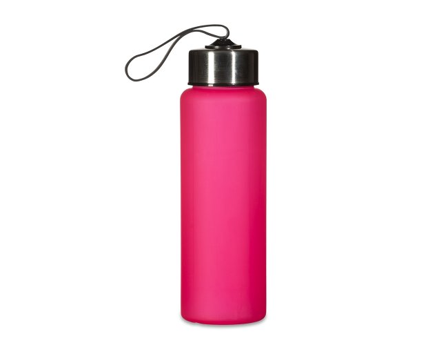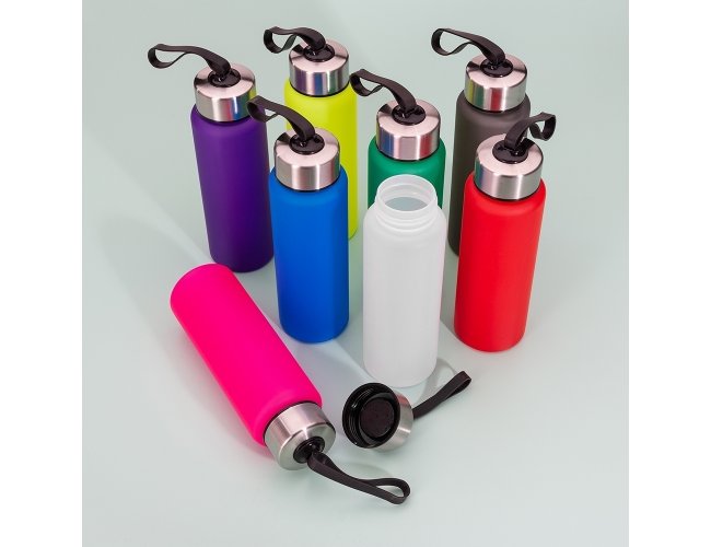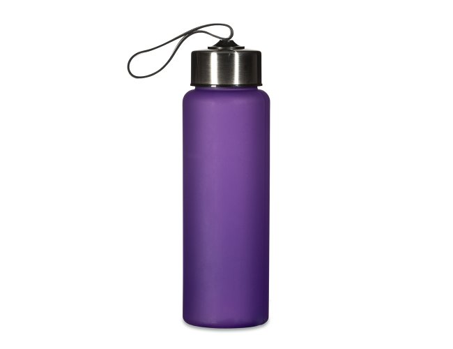Squeeze plástico de 680ml. Produzido em PVC fosco, a squeeze possui tampa rosqueável em inox com alça elástica para transporte (não removível).