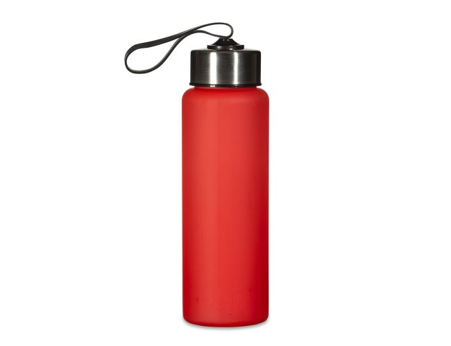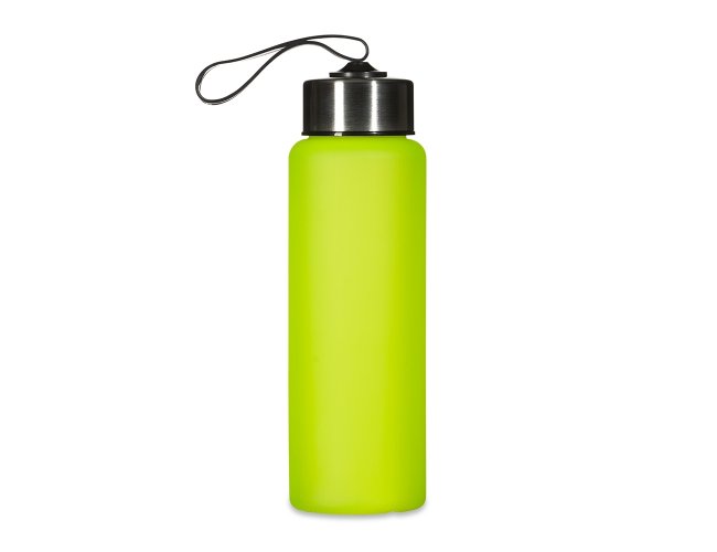 Squeeze plástico de 680ml. Produzido em PVC fosco, a squeeze possui tampa rosqueável em inox com alça elástica para transporte (não removível).