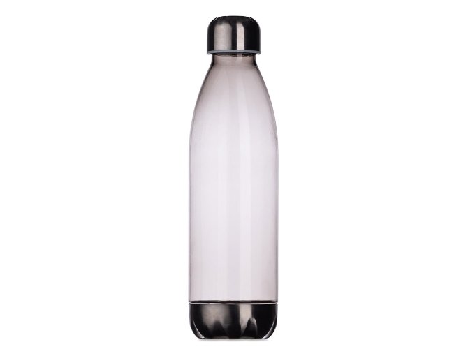Squeeze plástico 700ml formato garrafa. Corpo transparente colorido, possui tampa e base em alumínio.