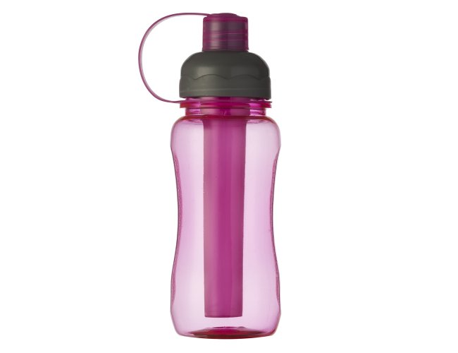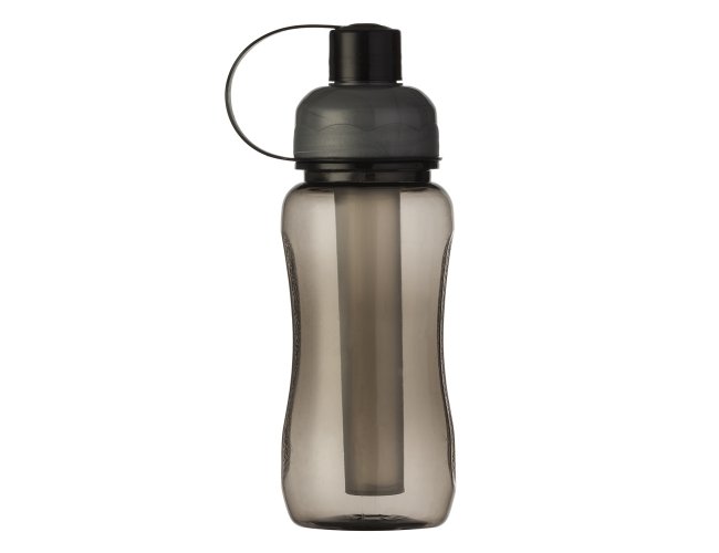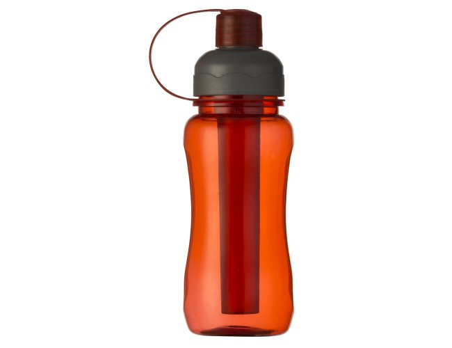 Squeeze plástico 400ml ice bar. Squeeze colorido acinturado com detalhe retangular texturizado nas laterais, possui tampa cinza com detalhe ondulado ao redor e tampa com alça para o bico. Parte interna possui uma barra congelante(desencaixe a barra da tampa), encha a barra e coloque no congelador/freezer para gelar e depois e só colocar novamente no squeeze.