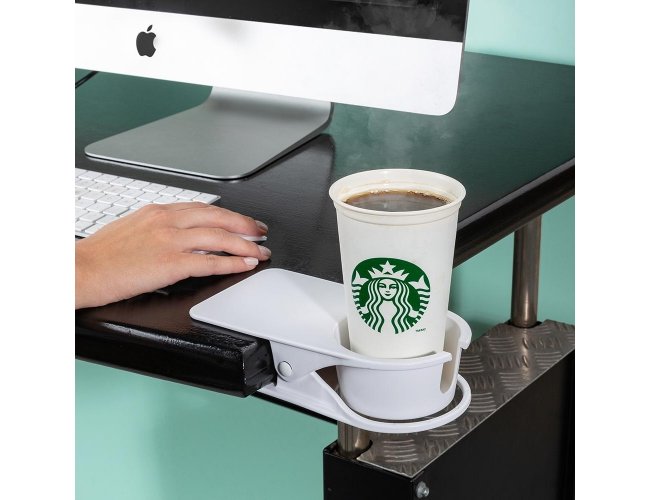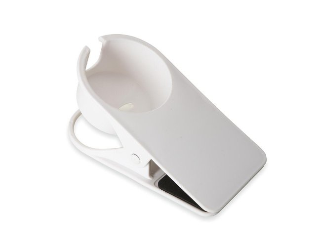 Suporte de mesa para bebidas, copos ou celular com abas de fixação. Material: ABS.