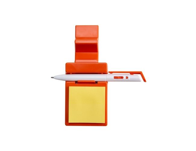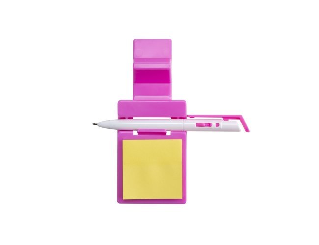 Suporte plástico para celular com caneta plástica e bloquinho de rascunho. Suporte colorido com encaixe para caneta e celular, acompanha bloquinho amarelo com aproximadamente 50 folhas e caneta plástica branca com detalhes coloridos(acompanha na mesma cor do suporte), aciona por clique e para destravar basta apertar a parte inferior do clip.
