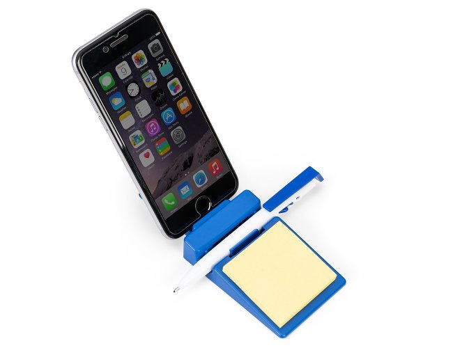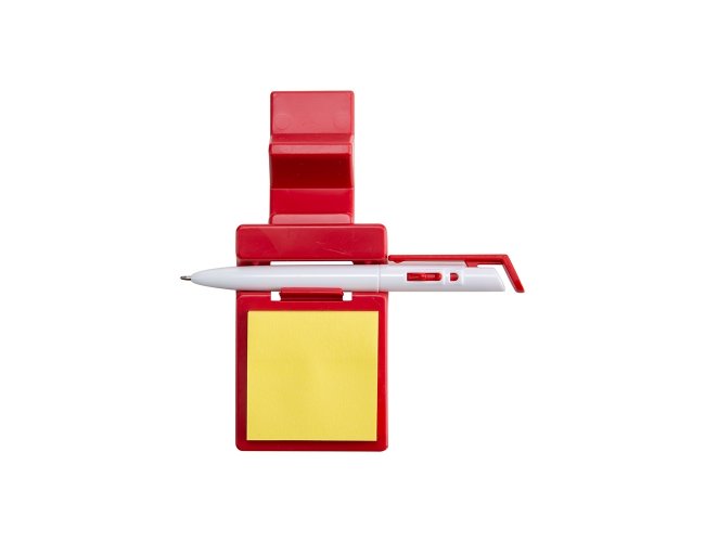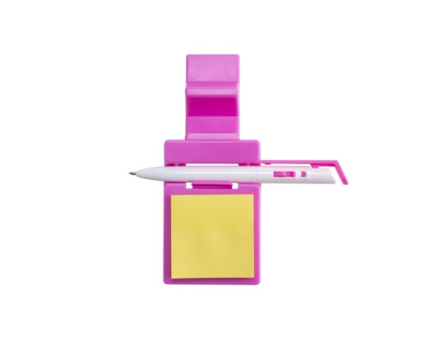 Suporte plástico para celular com caneta plástica e bloquinho de rascunho. Suporte colorido com encaixe para caneta e celular, acompanha bloquinho amarelo com aproximadamente 50 folhas e caneta plástica branca com detalhes coloridos(acompanha na mesma cor do suporte), aciona por clique e para destravar basta apertar a parte inferior do clip.