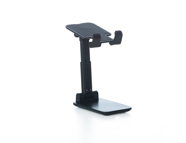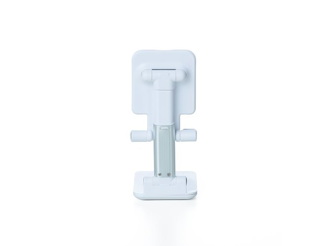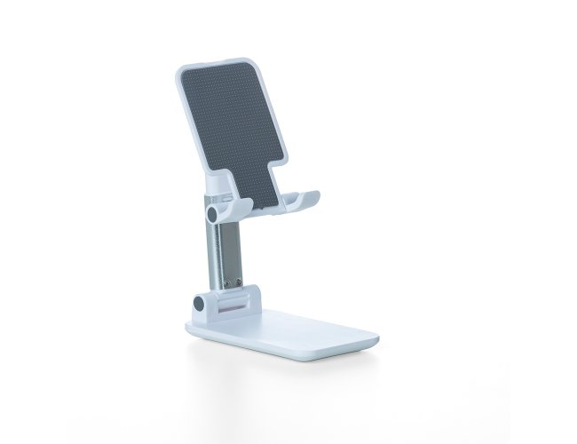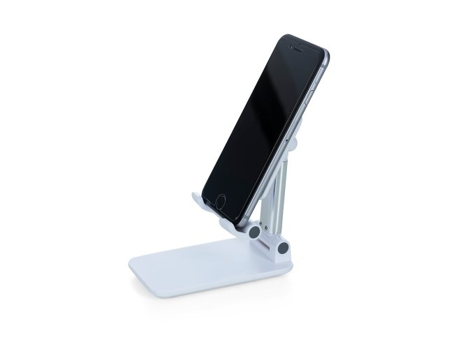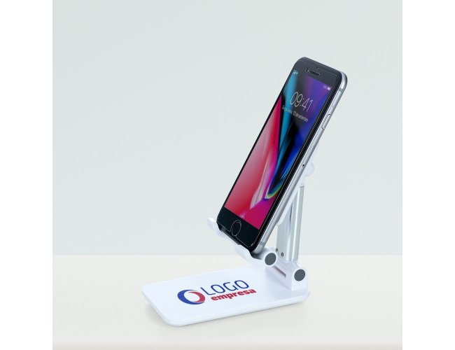Suporte retrátil para celulares e tablets. Produzido em plástico com haste de alumínio, o suporte possui ângulo ajustável e extensão de altura. Seu tapete de silicone antiderrapante garante a estabilidade do eletrônico sem machucar sua traseira. As “canaletas” também revestidas de silicone encaixam perfeitamente ao eletrônico sem bloquear a visualização da tela, além do espaçamento ideal que permite o carregamento do celular/tablet no suporte sem bloquear a visão ou atrapalhar sua estadia. Com base de silicone antiderrapante, o suporte permanece fixo e estável nas mais diversas superfícies.